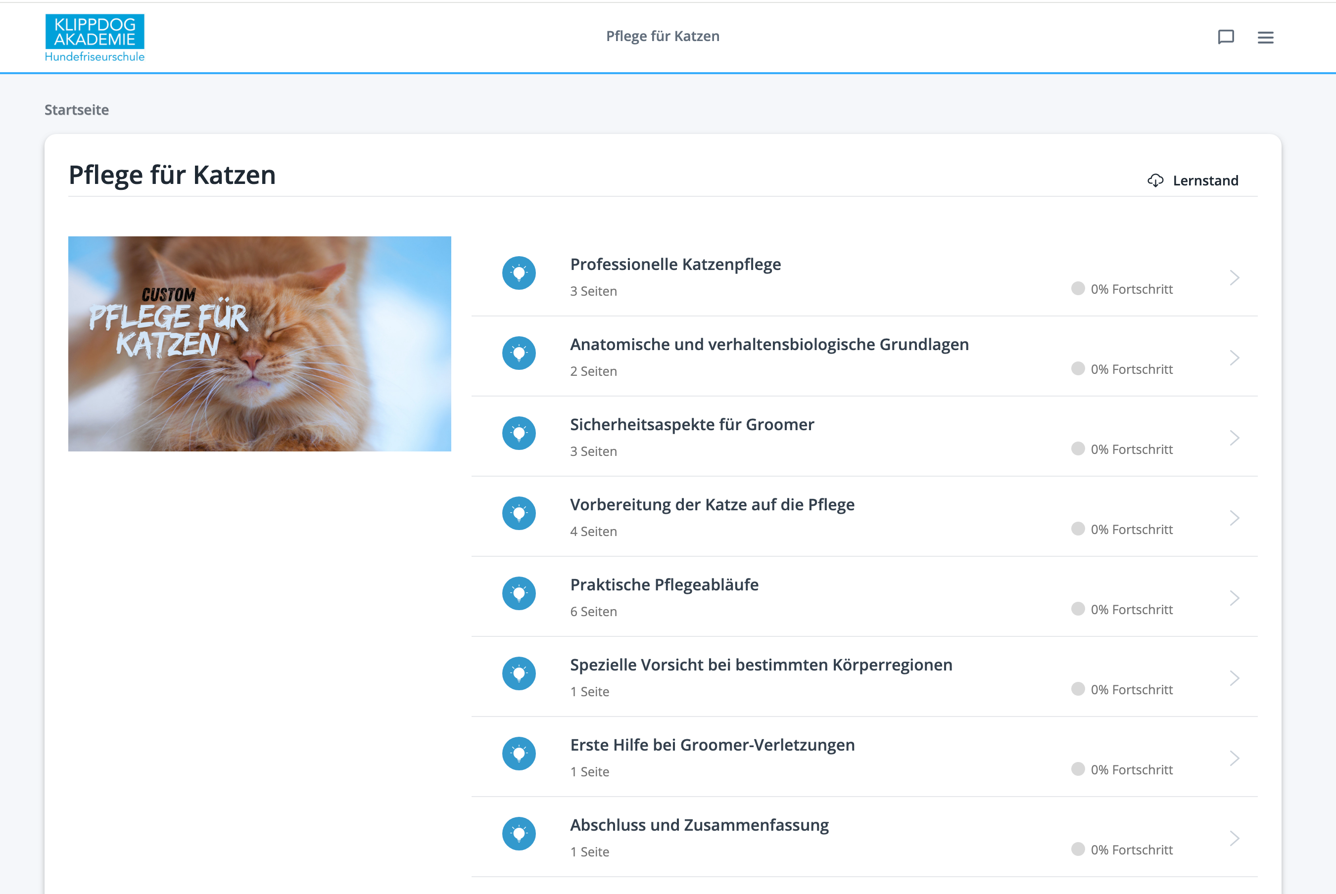 ✅ Unser eLearning-Kurs „Katzenpflege“ bietet dir neben detaillierten Videoanleitungen auch Produktempfehlungen, Pflegepläne, Troubleshooting-Tipps sowie katzenspezifische Hinweise zu Fell, Haut, Verhalten und Handling.