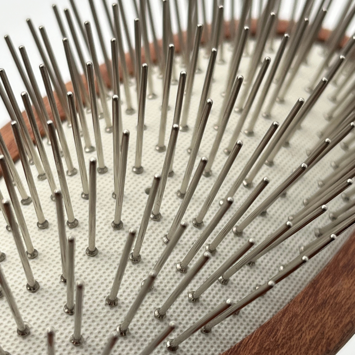 Für zusätzlichen Komfort sorgt das Gummikissen, das die Pins leicht nachgiebig abfedert. Dadurch wird der Bürstendruck gleichmäßiger verteilt – für ein sanftes Bürstengefühl und kontrolliertes Arbeiten, auch bei längeren Pflegeeinheiten.