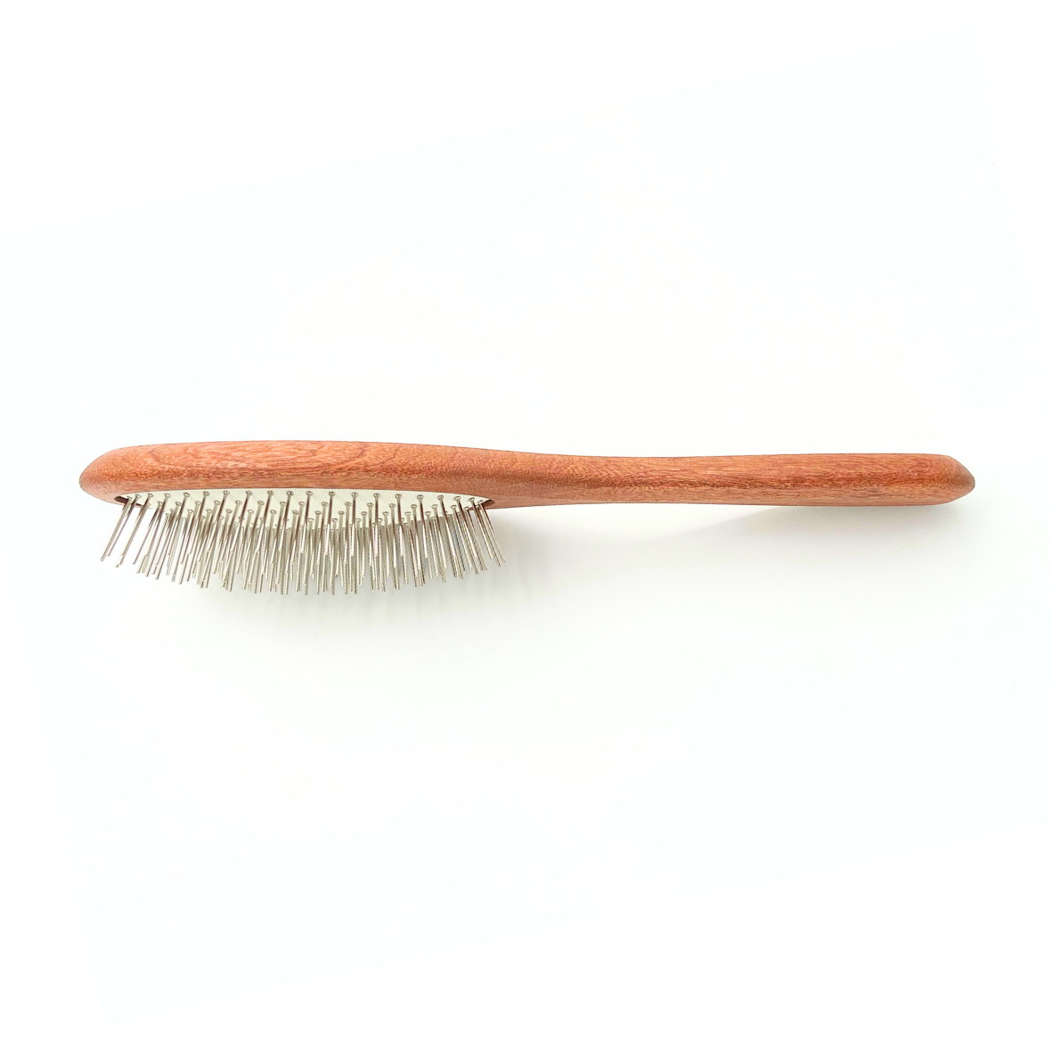 Diese Holzbürste ist ideal für die regelmäßige Fellpflege von Hunden und Katzen. Die abgerundeten Edelstahl-Pins (17 mm) gleiten schonend durch das Fell und helfen dabei, lose Haare zu entfernen und das Fell zu glätten, ohne unangenehm zu ziepen.